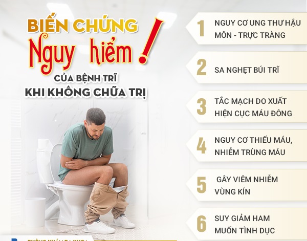 - Sa nghẹt, tắc mạch trĩ: Búi trĩ phồng to, cản trở lưu thông máu, người bệnh đau buốt, khó ngồi hoặc đi lại.