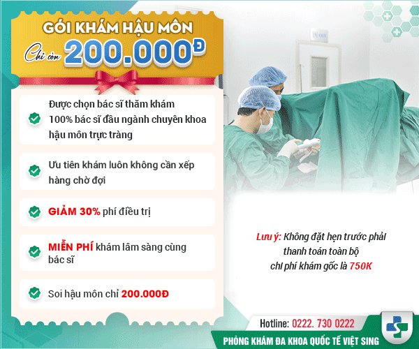 - Tận dụng ưu đãi định kỳ: Việt Sing thường xuyên có các chương trình ưu đãi giúp bạn tiết kiệm chi phí mổ trĩ đáng kể khi đặt hẹn trước [Tại đây].