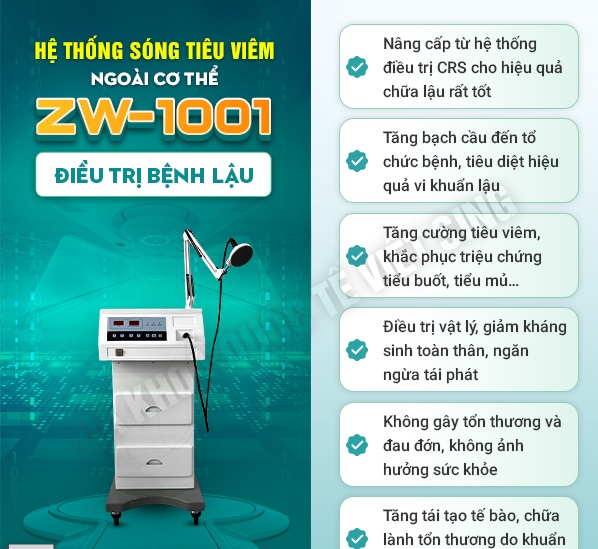 Trong trường hợp khí hư màu xanh do lậu, công nghệ sóng tiêu viêm ngoài cơ thể ZW-1001 sẽ tác động sóng ngắn để tăng nhiệt tại tổ chức bệnh, tăng tuần hoàn máu, sản sinh miễn dịch và ức chế vi khuẩn lậu, giảm viêm, hồi phục tổn thương nhanh.