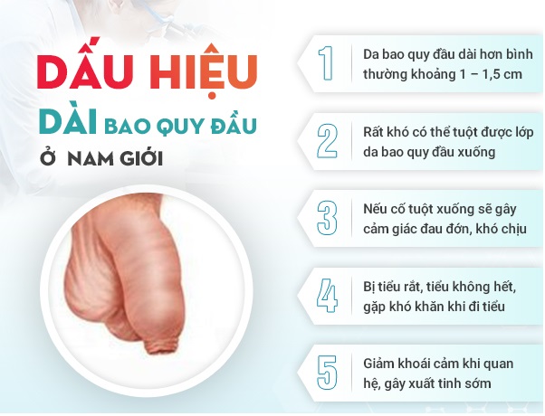 Nam giới được coi là mắc bao quy đầu dài nếu xuất hiện các dấu hiệu bất thường như: