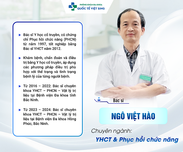 Phòng khám ngoài giờ của bác sĩ Ngô Việt Hào được người bệnh đánh giá cao về cả tay nghề, dịch vụ y tế và thái độ tận tâm. Bác sĩ Hào đã có hơn 10 năm kinh nghiệm công tác tại các bệnh viện lớn của tỉnh.